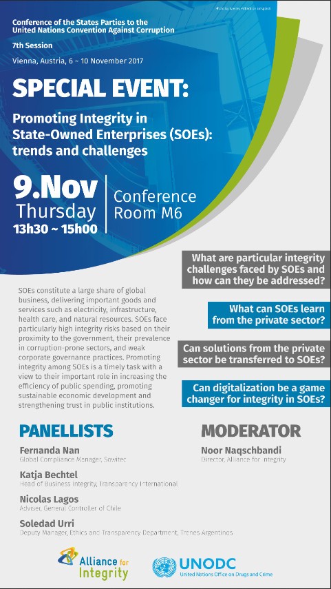 Our Global Compliance Manager, Fernanda Nan, represented the private sector voice in the Special Event: “Promoting Integrity in State-Owned Enterprises (SOEs)”. The main topics were: what are particular integrity challenges faced by SOEs and how can they be addressed? What can SOEs learn from the private sector? Can solutions from the private sector be transferred to SOEs?